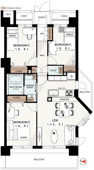 販売価格 5,780万円(税込)3LDK+ルーフバルコニー 8階建て8階部分 最上階四方向角住宅 武蔵野市中町1丁目 中央線・総武中央線・東西線 「三鷹」駅徒歩3分 66.31㎡(壁芯) 1982年築 |