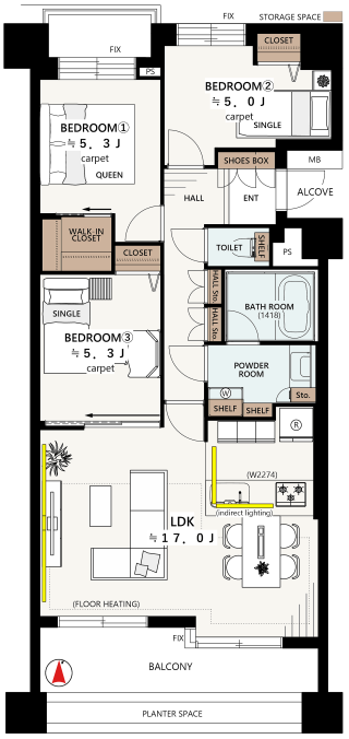 | 販売価格 9,480万円(税込) 3LDK+2W 武蔵野市境南町2丁目 5階建て5階 中央線・西武多摩湖線「武蔵境」駅徒歩3分 75.68㎡(壁芯) 2002年築 |